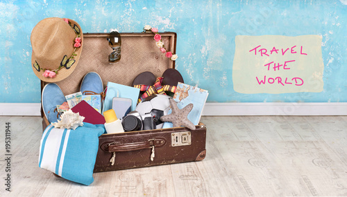 Auf Reisen Gehen Koffer Packen Stock Photo Adobe Stock